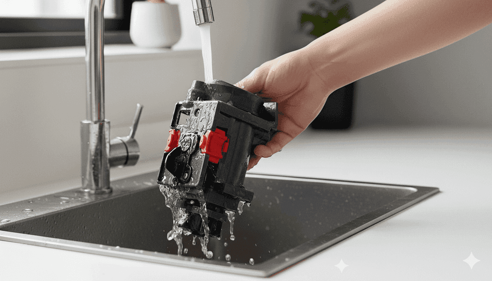 3. Промойте его под теплой проточной водой без моющих средств (агрессивная химия повредит смазку).